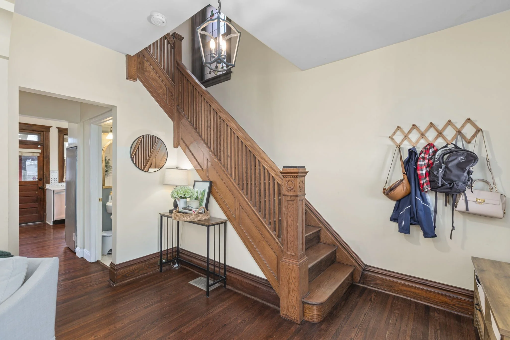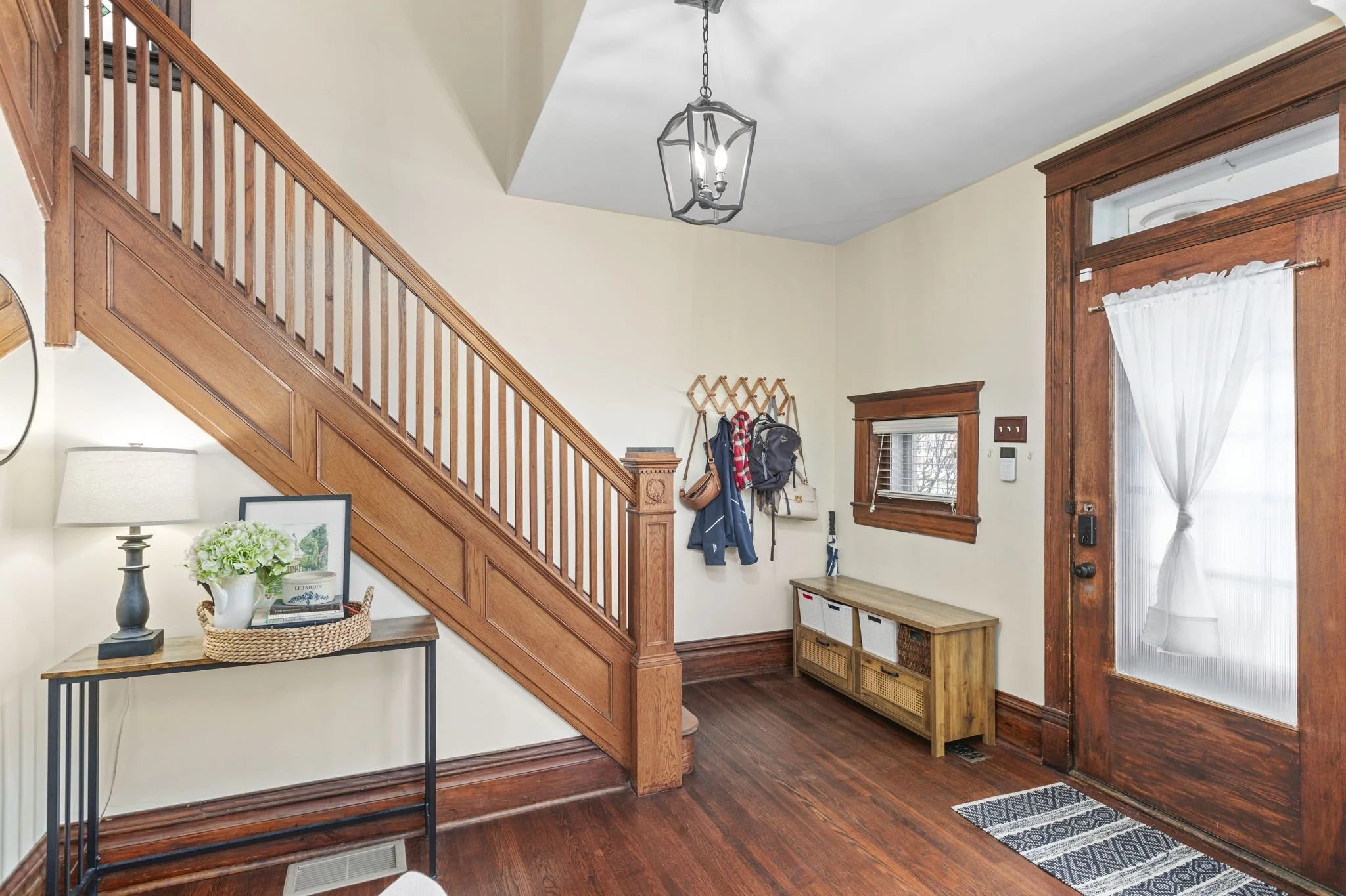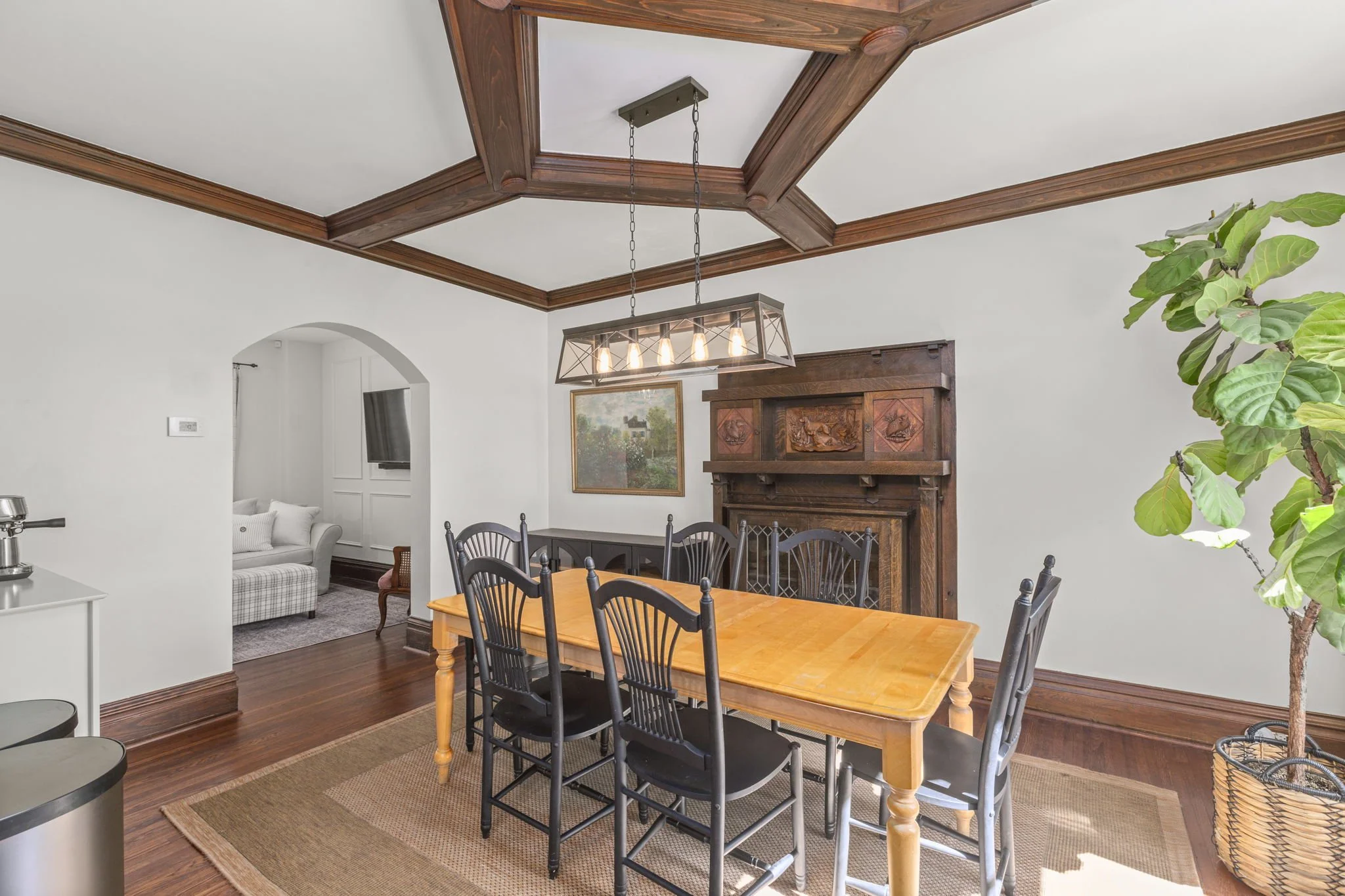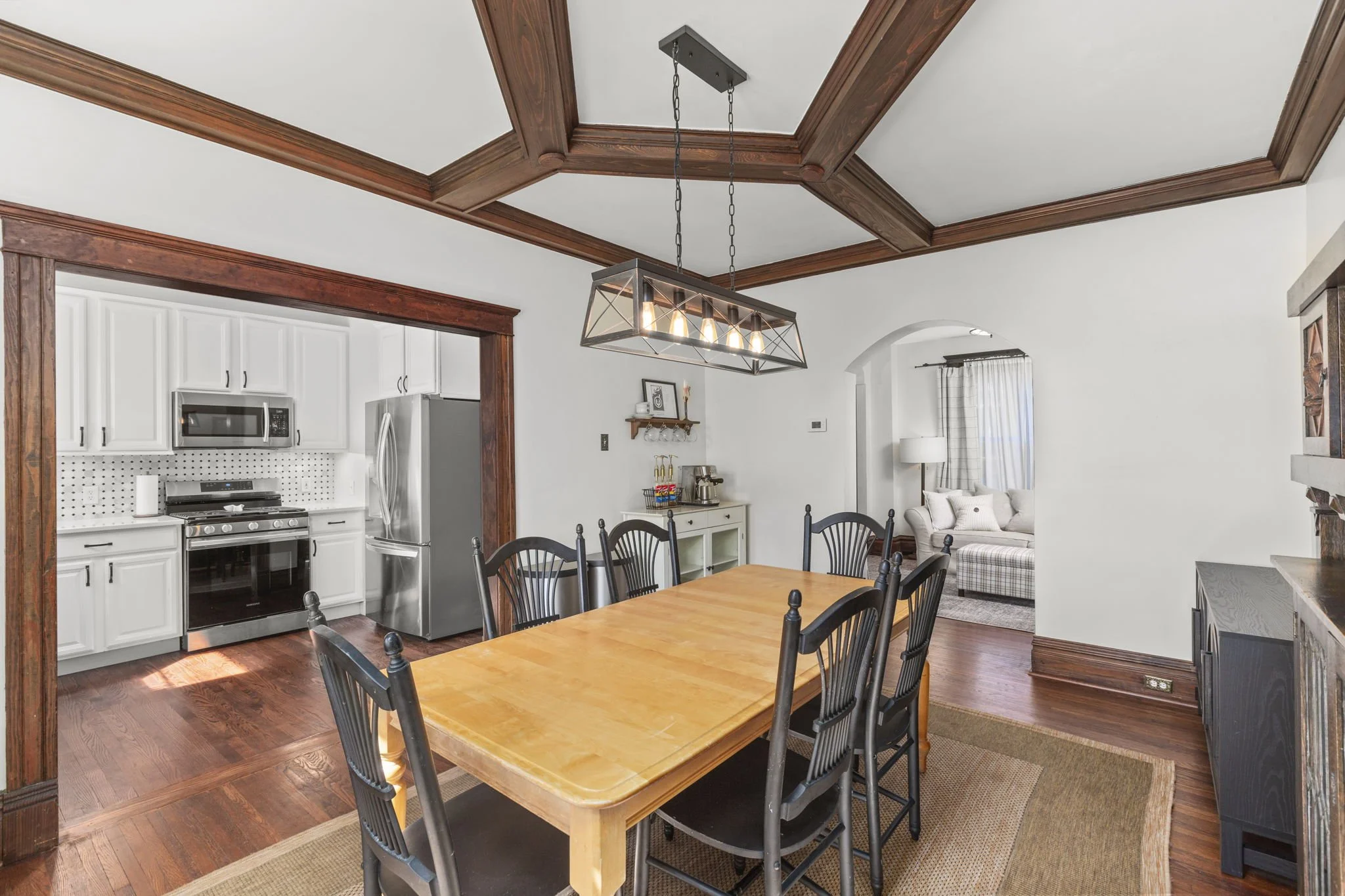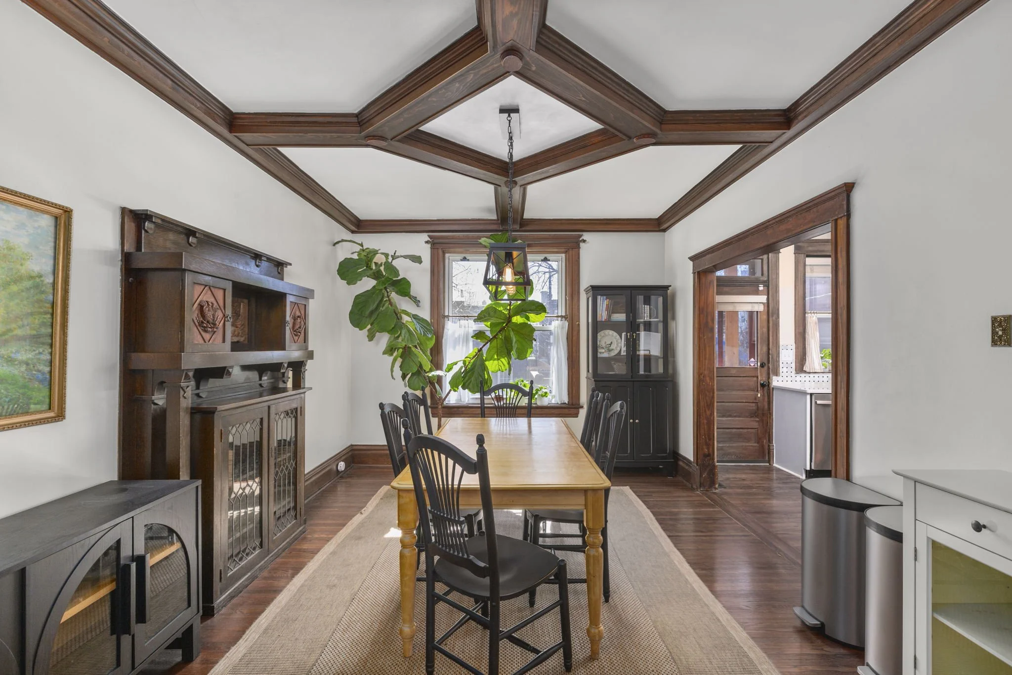 Step into the foyer which leads to a welcoming living room featuring beautiful box trim detailing. Continue into the elegant dining room, adorned with dark wood features & built-ins, which seamlessly flows into the newly updated kitchen. A convenient half bath completes the 1st floor.